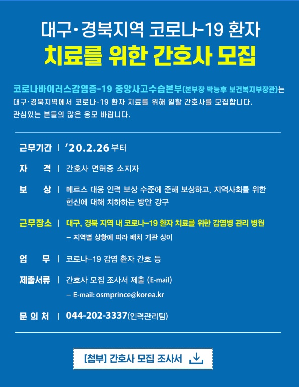 대구경북지역 코로나19 환자 치료를 위한 간호사 모집