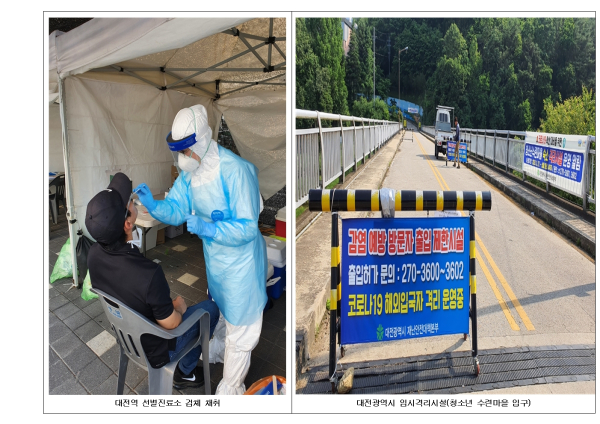 대전광역시는 3월 31일부터 6월 12일까지 대전역 선별진료소를 운영하였다. 이후 대전역 선별진료소 운영은 중단되었으나 각 구 보건소 선별진료소는 정상 운영되고 있다. 대전광역시 5개구 보건소의 간호직 공무원이 코로나19 현장 최일선인 보건소 선별진료소에서 검체 채취를 직접 실시하며 코로나19 지역 확산 예방업무에 앞장서고 있다.