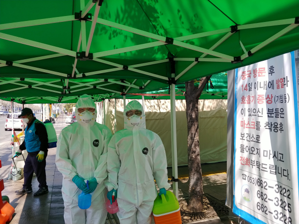 대구광역시 동구보건소 회원들은 지난 2월 22일부터 전격적으로 코로나19 대비 업무를 수행하고 있습니다. 그 이전부터 코로나19 대응 업무를 수행하였습니다만, 코로나19 확진자 급증에 따라 대구광역시 및 동구에서는 모든 인력과 자원을 동원하여 총력전을 펼치고 있습니다. 현재 대구광역시 동구에서는 14,000여건의 검사를 실시하였습니다.