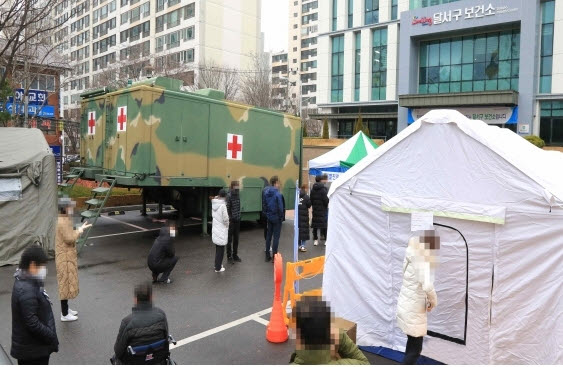 대구지회 달서구보건소 간호직 공무원들은 폭발적인 코로나19 선별검사 수요를 감당하기에 부족한 검사시설에 대응하여, 2/24~3/31까지 달서구보건소 앞 주차장에 육군본부와 협업하여 선별진료소를 확대 운영 및 조기 선별검사를 통해 감염병 확산 방지에 선제적으로 대응하였다.