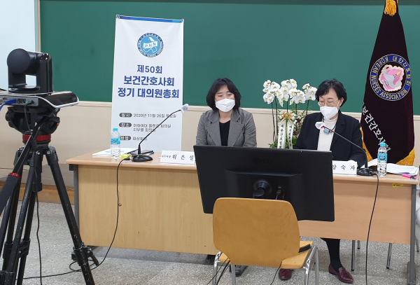 2020년 제50회 정기 대의원총회가 11월 26일 18시부터 온라인 화상회의로 진행되었다. 총회는 양숙자 회장과 위은실 사무처장 등의 주도로 이화여대 헬렌관 301호실에서 진행되었으며, 코로나19 확산으로 인하여 각 대의원들은 개별 접속장소에서 온라인으로 참여하였다. 보건간호사회 양숙자 회장의 개회사를 시작으로 대한간호협회 신경림 회장의 동영상 격려사가 진행되었고, 보건간호사회 50주년 기념 표창장, 우수지회, 모범간호사, 장학증서, 공로패, 감사패 시상이 이어졌다.