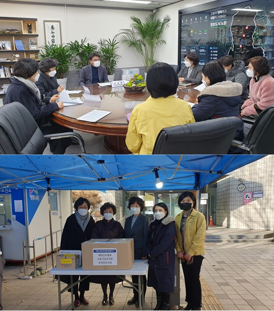 1월5일 대한간호협회 신경림 회장과 보건간호사회 양숙자 회장, 정남숙 서울지회장 등은 노원구 보건소와 동작구 보건소를 방문하였다. 노원구 보건소 방문에서는 오승록 구청장, 이은주 보건소장, 조남주 건강증진과장과의 면담과 보건소의 선별진료소 방문을 통해 코로나19 대응에 대한 노고에 격려의 뜻을 전하고 방한화 등을 전달하였다. 동작구 보건소 방문에서는 김형숙 건강관리과장의 안내로 코로나19 선별진료소 등을 둘러보면서 방한화 등을 전달하고 코로나19 대응에 대한 위로와 격려의 인사를 전했다.
